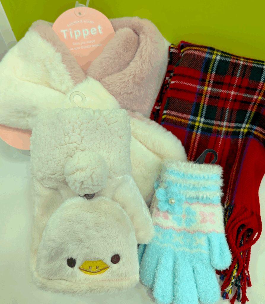 マフラーやティペット、手袋など、お子さまサイズのものから、シンプルで大人の方も使いやすいものもございます♪