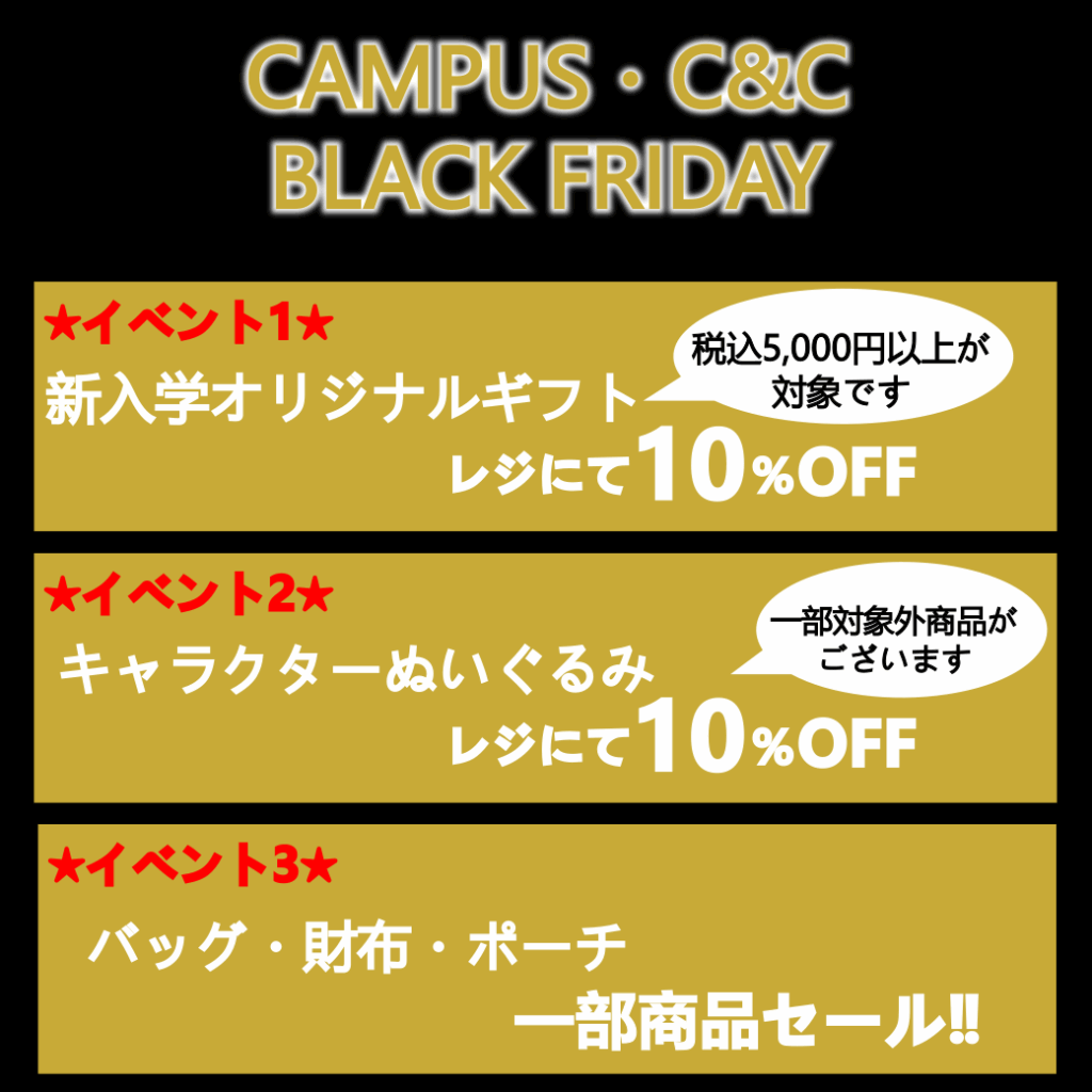 いつもキャンパス・C&Cをご利用いただき、ありがとうございます。本日は、ブラックフライデーにて実施いたします、イベント内容のご案内です。